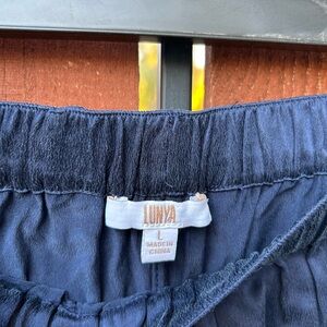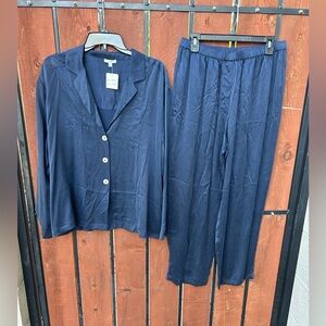 Lunya washable silk long sleeve pant set size Large navy blue