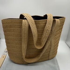 Draper James Natural Straw Shoulder Bag Purse with Dark Blue Lining NWOT