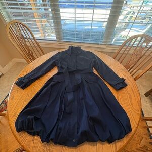 Samuel Dong Bubble Trench Rain Coat women's size L midnight blue belted elegant