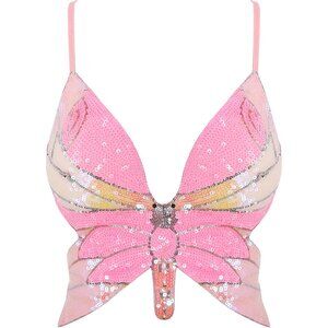 Women's Butterfly Sequin Crop Top — Sparkle and charm for every party!
