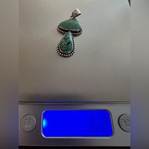 ❤️ White Water Turquoise Sterling Navajo 2 Stone Pendant 1.69” L - 6.2 Gram