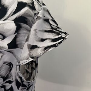 Worthington black white floral button front cap sleeve blouse Size M