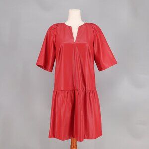 ANN TAYLOR Faux Leather Peplum Dress Split Neck Beaming Blush Red Size 8