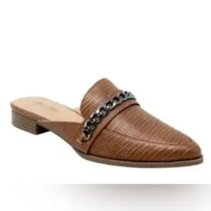 Charles David Brown Enya Mules Size 10 Brown Slip On Loafer Chain Accent