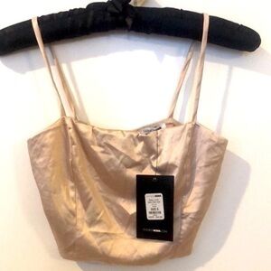 FASHION NOVA | NWT Fashion Nova Easy Lover Satin Beige Crop Top - Size Small