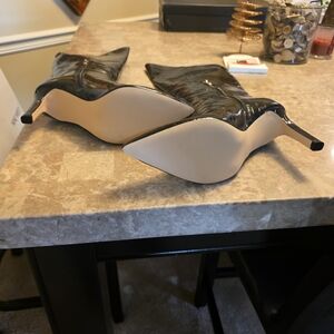 Black comfortable boots with croc-embossed texture. Sleek design with pointed toe. Perfect for elevating any outfit. Regular calf.