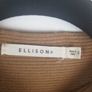 Ellison mock neck women's brown ribbed 3/4 sleeve cropped shirt. Size small. 52% Viscose, 28% Polyester, and 20% Nylon. Pit to pit 24" and length 20.5". Good pre-owned condition.