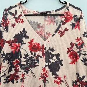 Torrid Floral Waffle Knit V Neck Tunic Length Shirt Blouse Womens Size 3 22/24