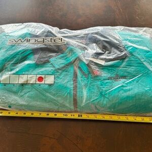 Elevate your style with this vintage Pennzoil teal bomber jacket featuring navy accents. Perfect for a modern, casual look. Has two outer pockets and an inside pocket. Never worn. Removed from plastic storage bag to take pictures. It has been stored in the bag for years so it is wrinkled. Own a piece of racing history with this classic Pennzoil jacket. Men’s sized XL. See images for additional details. No damage noted. Smoke free home.