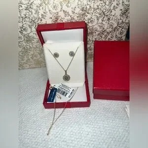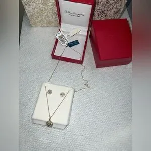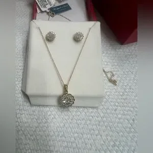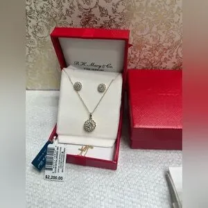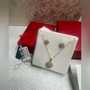 MACY’S 2-PC 1CT DIAMOND SET CLUSTER PENDANT NECKLACE & STUDS