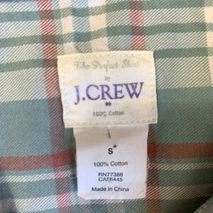 J. Crew Perfect Shirt Western Plaid Button Up Long Sleeves Size S Green Cotton