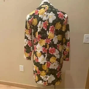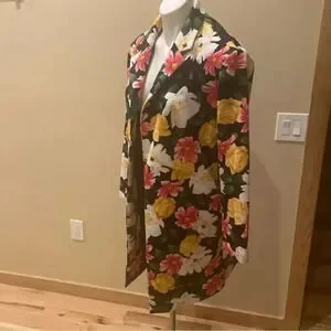 This blazer jacket is so versatile and absolutely beautiful. Black background with multi color flowers. This piece is perfect for fall. This can be worn as a jacket or a blazer, depending on your style and mood.