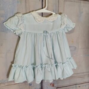 Vintage 2 Pc Bundle Baby Girl Dresses Floral Embroidery Bows Lace Ruffles