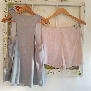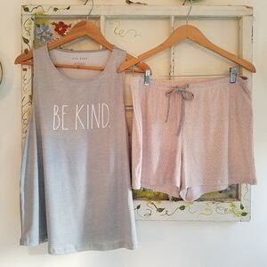 NWT Rae Dunn Racerback Tank Short 2 Pc Set Gray Pink Size Large