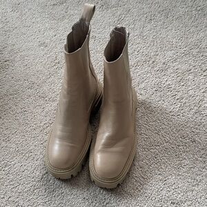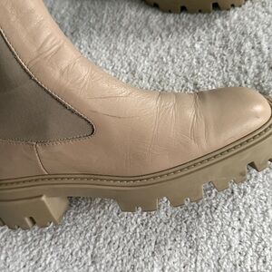 Zara Leather Boots Ecru Ivory Track Soles Chelsea EU36 Chunky Sole Boots