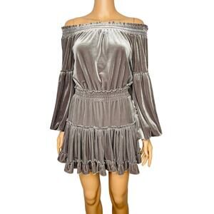 MISA Los Angeles Womens Talin Off The shoulder Velvet Mini Dress Sz S Gray in excellent preowned condition