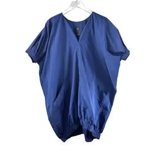 Elevate your wardrobe with this stunning Zero + Maria Cornejo Rae Bomber Tunic in Mykonos Blue, size XS. This short-sleeved top features a unique round slit neck and stylish short sleeves with delicate pleat detailing and pockets!