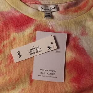 NWT Love Fire Cropped Tie-Dye Cardigan Pink Yellow XL Dolman Sleeve