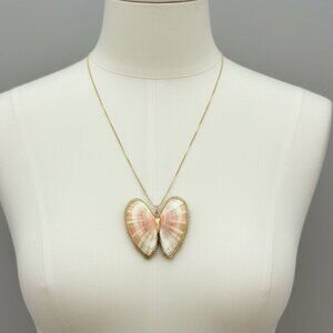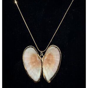 This necklace tells a story of the ocean, capturing the beauty of nature with a heart-shaped seashell, encased in gold-plated edges for timeless elegance.