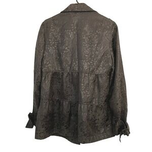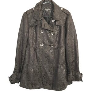 Apt 9 Womens Double Breasted Floral Trench Coat Peplum Jacket Tiered Brown Sz M