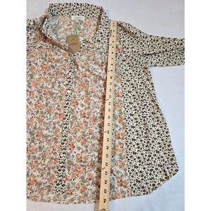 Umgee USA Floral Patchwork Long Sleeve Button Down Shirt Women Oversized XL New