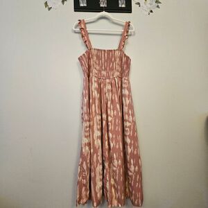 Add some instant sweetness to your wardrobe with this midi dress featuring a smocked bodice, ruffled adjustable straps, and floral print.