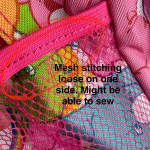 Attention! See last picture. Mesh pocket on one side needs stitching.