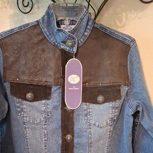 DG2 by Diane Gilman Blue and Brown Denim Jacket. Excellent Condion NWT Size XS