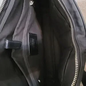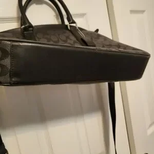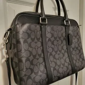 Coach Men's Perry Slim Brief Signature Canvas Zip Top Leather Bag Charcoal