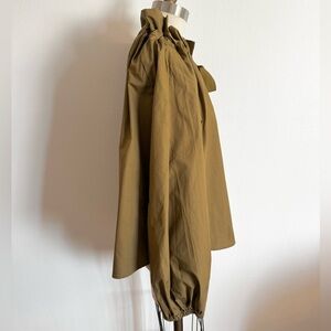 Tan tie neck blouse. Ruffle neck detail. Size small. Loose fitting. 100% cotton, no stretch. New without tags. Never worn