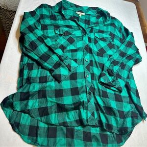 Hestera & Orchard Green Black Plaid Flannel Shirt XL Soft Rayon