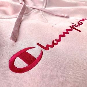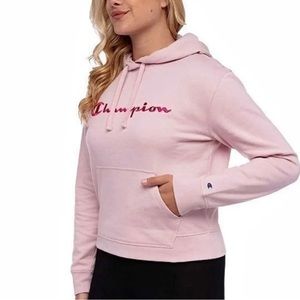 NWT Champion Long Sleeve Pink Logo Embroidered Hoodie Sweatshirt