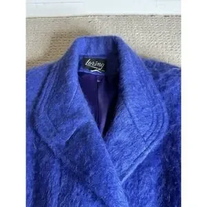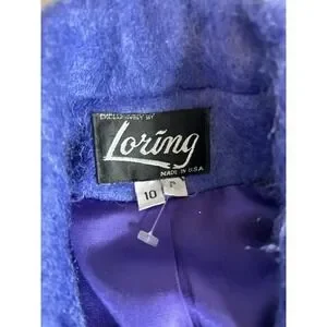This product is a women's vintage size 10 P coat in a beautiful periwinkle color, made of super soft mohair wool. The coat is an original piece from the brand Loring, and was made in the USA. It falls under the specialty category of vintage clothing, specifically coats, jackets, and vests. This coat would be a stylish and unique addition to any woman's wardrobe, perfect for adding a touch of vintage charm to any outfit.