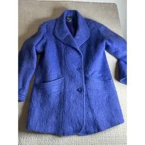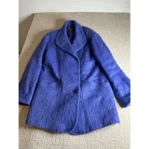 Women's Vtg Size 10 P Loring Super Soft Periwinkle Mohair Wool Coat Made In USA
