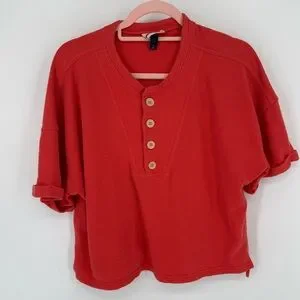 Stylish red half button-down shirt by Universal Thread. Features short sleeves and a relaxed fit.