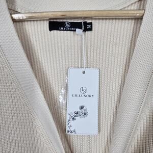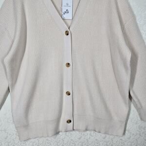 Lillusory Cardigan Sweater sz M Beige Sand Chunky Knit Long Sleeve Preppy. Oversized fit.