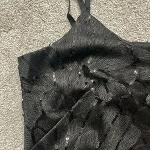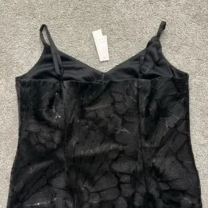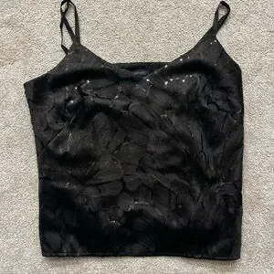 Chic black camisole with a textured design. Perfect for stylish evenings. Tailored fit with side zipper, adjustable straps and great seams at bust and on back.