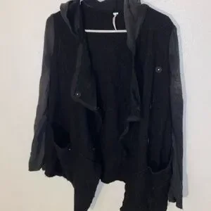 FREE PEOPLE wool blend hooded Black Gray asymmetric jacket coat Size Small