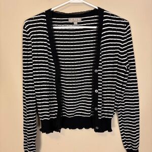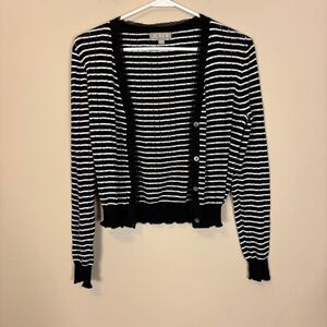 Excellent condition J. Crew Black & White Striped Lace Trim Button Front Cardigan Sweater Small