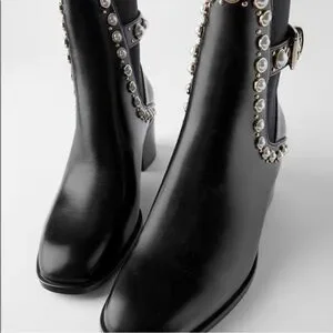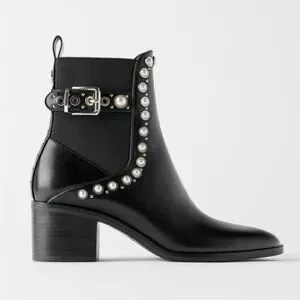 🖤Zara Black Ankle Boots with Faux Pearl Detailing🤍