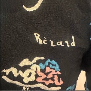 The dress is from Anna Sui’s vintage spring '95 collection, “Bérard Face”. It features floral bouquets and faces designed by French artist Christian Bérard. It is a 40s-inspired design, which is casual yet elegant. Her designs often incorporate elements of nostalgia, fantasy, and rock and roll. This dress was featured in London’s Fashion and Textile Museum. Picture being worn in red by Madonna in June of 1995.