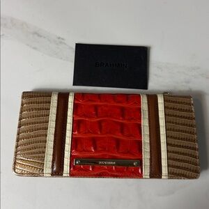 Brahmin Ady Wallet Cabana Vertical Vineyard Genuine leather orange gold tan New