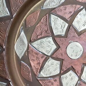 Vintage Moroccan handmade copper wall plate / art. Can also lay flat as a tray. Has some wear / patina but overall in good condition!