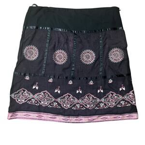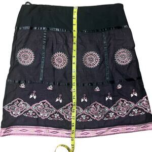 Persaman New York Pink and Black Paisley Embroidered Skirt Size 6