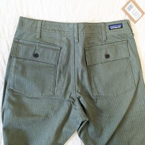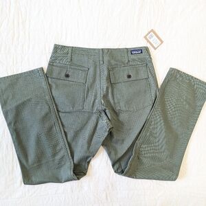 NWT Green Patagonia Organic Cotton Herringbone Utility Pants, Hiking Trousers