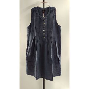 Quince Women 100% Organic Cotton Gauze Sleeveless Swing Dress Indigo Blue M
