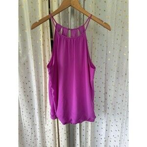 Express Chiffon High Neck Triple Open Back Keyhole Open Elastic Bottom Blouse M
