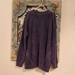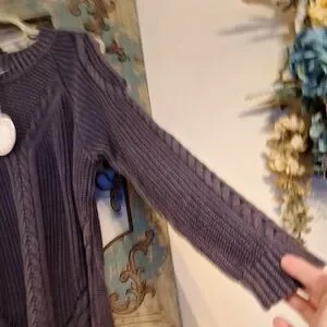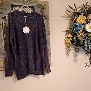Umgee Dark Gray Cable Knit Cold Shoulder Sweater. NWT Size Large