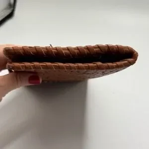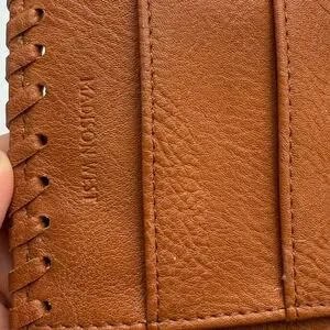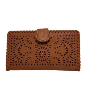 Madison West Brown Faux Leather Laser Cut Bifold Wallet Clutch Snap Closure