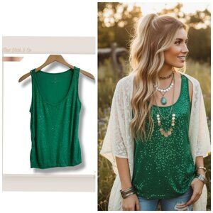 🌿Sparkling Green Sequin Tank Top by New York & Company - Medium
